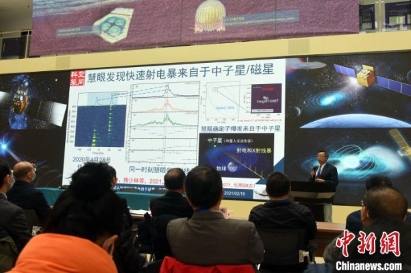 中国科学院高能物理研究所(中科院高能所)2月19日在北京举行“‘慧眼’天文卫星(HXMT)证认快速射电暴来自于磁星”新闻发布会说,针对2020年4月发现的编号为FRB 200428的亮度极高的快速射电暴,中国“慧眼”卫星最新观测发现首个跟该神秘快速射电暴相关联的X射线暴,确认其来自银河系内编号SGR J1935+2154的磁星,并在国际上首先证认该X射线暴包含的两个X射线脉冲是快速射电暴的高能对应体。