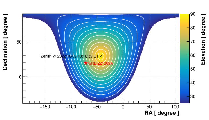 GRB 221009A爆发时刻在LHAASO视场中的位置。中科院高能所 供图